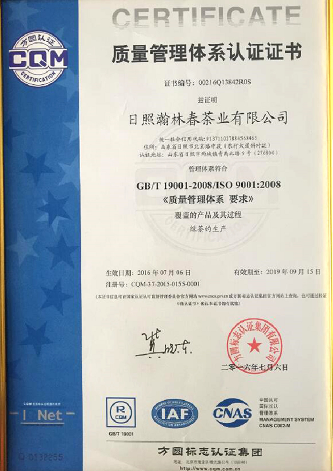 ISO 9001质量管理体系证书
