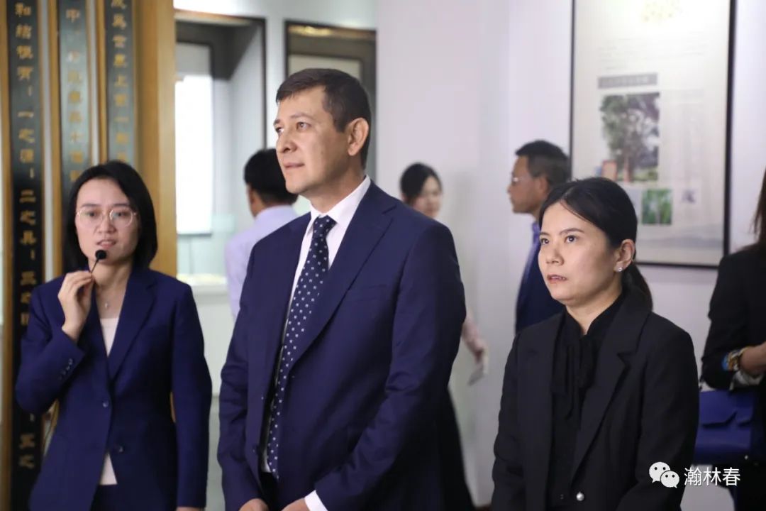 10月17日下午,乌兹别克斯坦塔什干州帕肯特区区长沙合鲁一行考察团到瀚林春茶博园进行调研。日照市人民政府副市长张金梅、办公室副主任岳涛、外事办公室主任吴乃军等领导陪同,山海天管委会主任袁利强和农业农村局局长王安雷等领导参加考察。