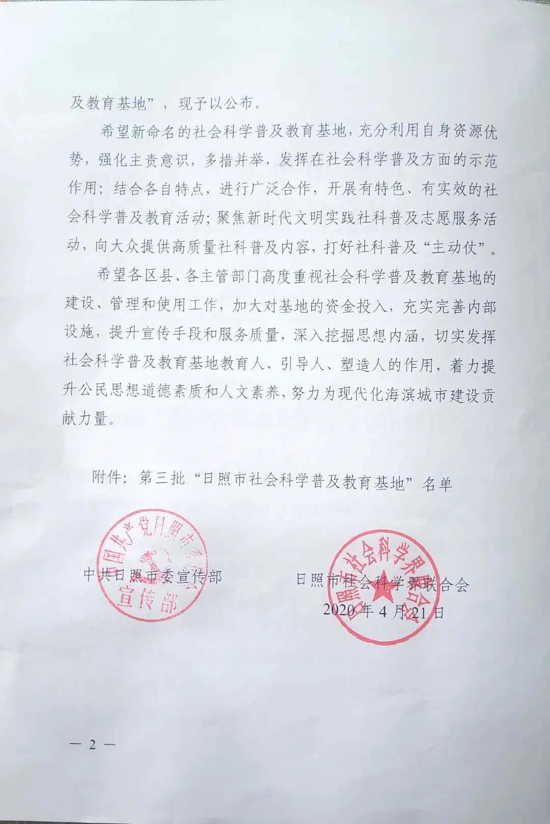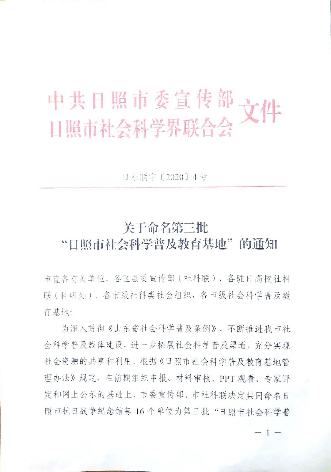 近日,中共日照市委宣传部、日照市社会科学界联合会《关于命名第三批“日照市社会科学普及教育基地”的通知》(日社联字【2020】4号)下发,瀚林春茶博园被评为日照市社会科学普及教育基地。