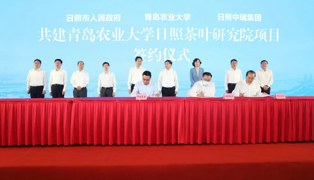 日照市副市长徐淑利、青岛农业大学副校长刘新民、中瑞集团董事长王东升共同签署共建青岛农业大学日照茶叶研究院协议。