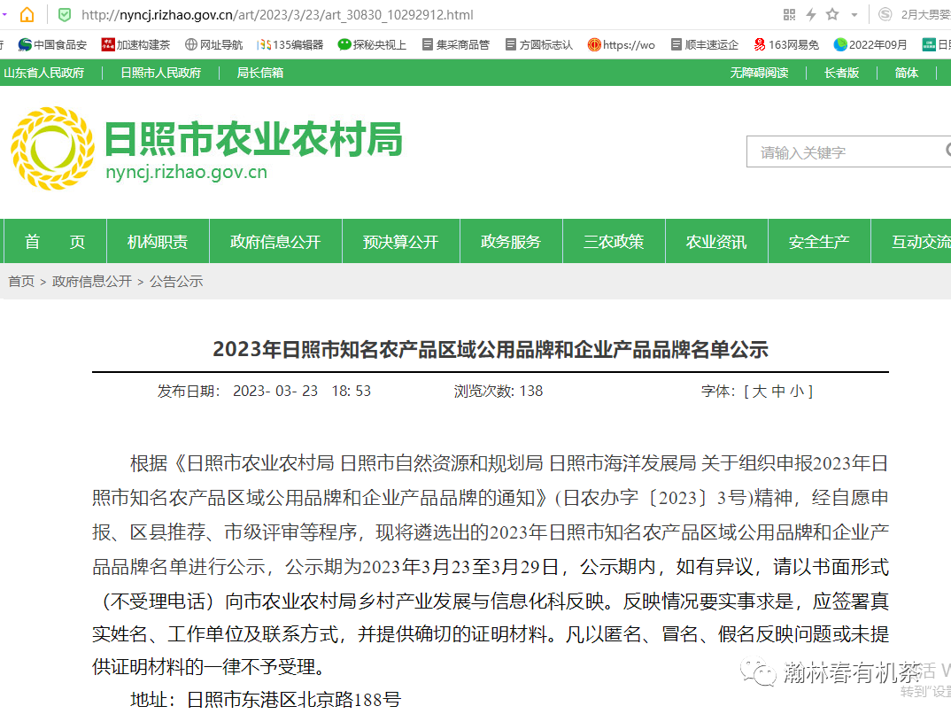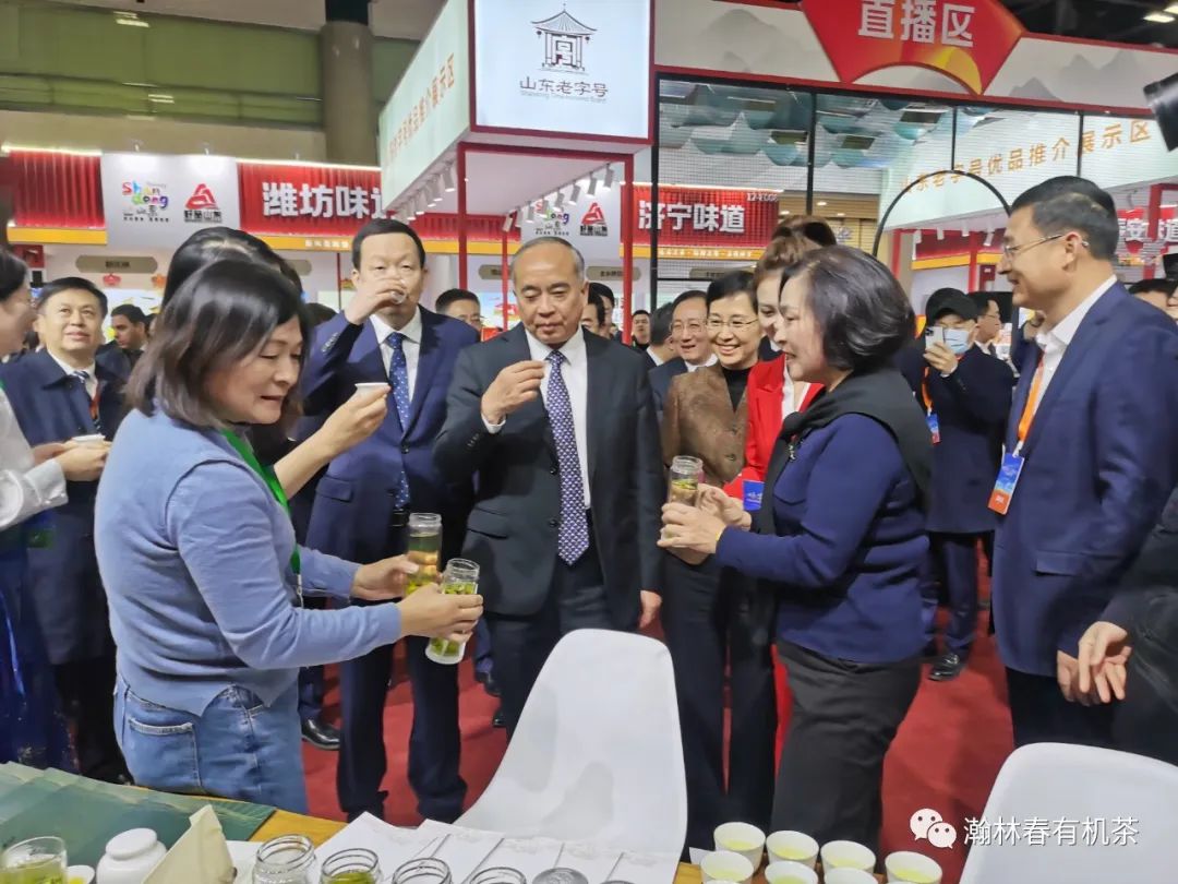 瀚林春参加“好品山东 好客山东”2023北京推介活动,山东省委书记林武,省委副书记、省长周乃翔及日照市委书记李在武等领导品尝瀚林春有机茶,省领导赞“日照茶是山东名片”
