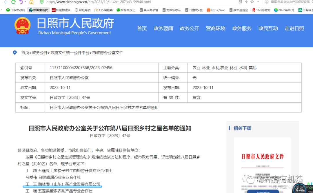 10月,瀚林春总经理王玉被评选为“第八届日照乡村之星”