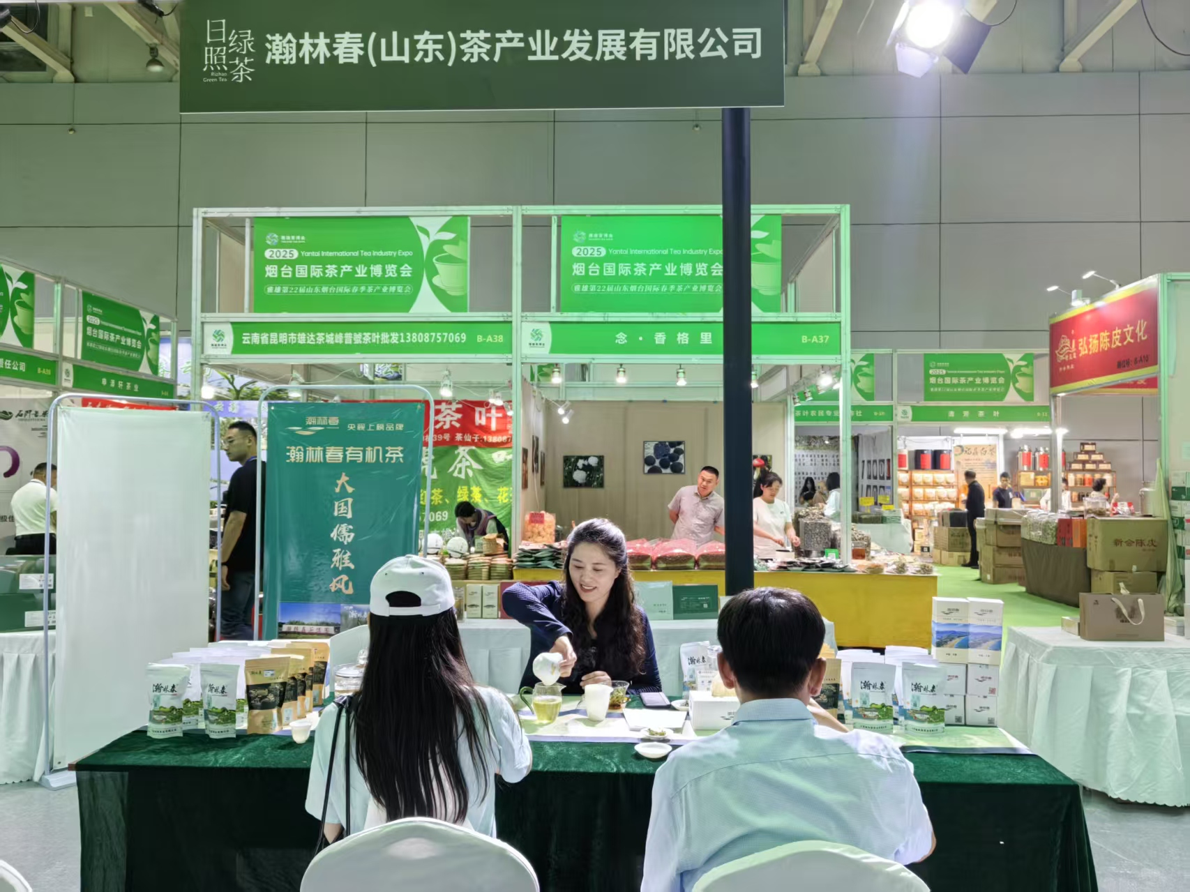 2025年5月30日至6月2日,2025山东(烟台)国际春季茶产业博览会在烟台国际博览中心盛大举行,瀚林春茶业精彩亮相。为茶博会的常客,日照瀚林春茶业备受瞩目。其展位以简约大气又富有茶文化内涵的风格设计,木质元素搭配清新绿植,营造出宁静雅致的品茶氛围,瞬间吸引众多茶友驻足。